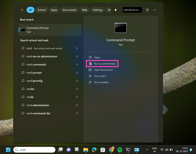 Βήμα 1:Κάντε κλικ στοΕρευνακουτί στογραμμή εργασιώνκαι αναζητήστε "CMD'.