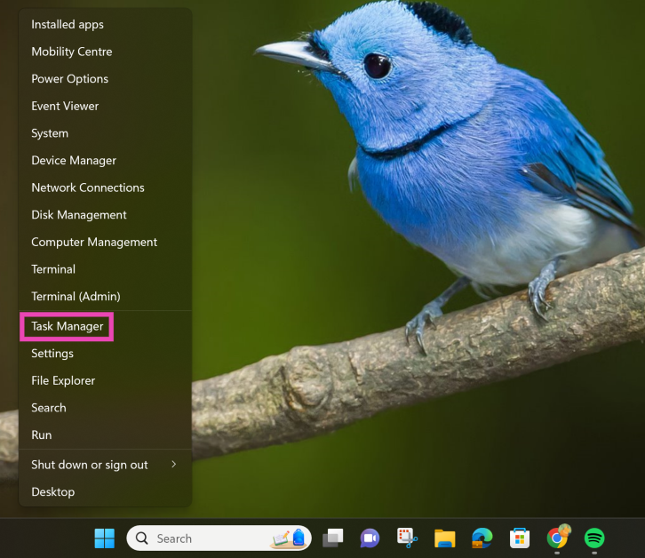 Βήμα 1:Ανοίγω τοΜενού γρήγορης πρόσβασηςκάνοντας δεξί κλικ στοΕικονίδιο των Windowsστη γραμμή εργασιών ή πατώντας τοΠλήκτρο Windows + x.