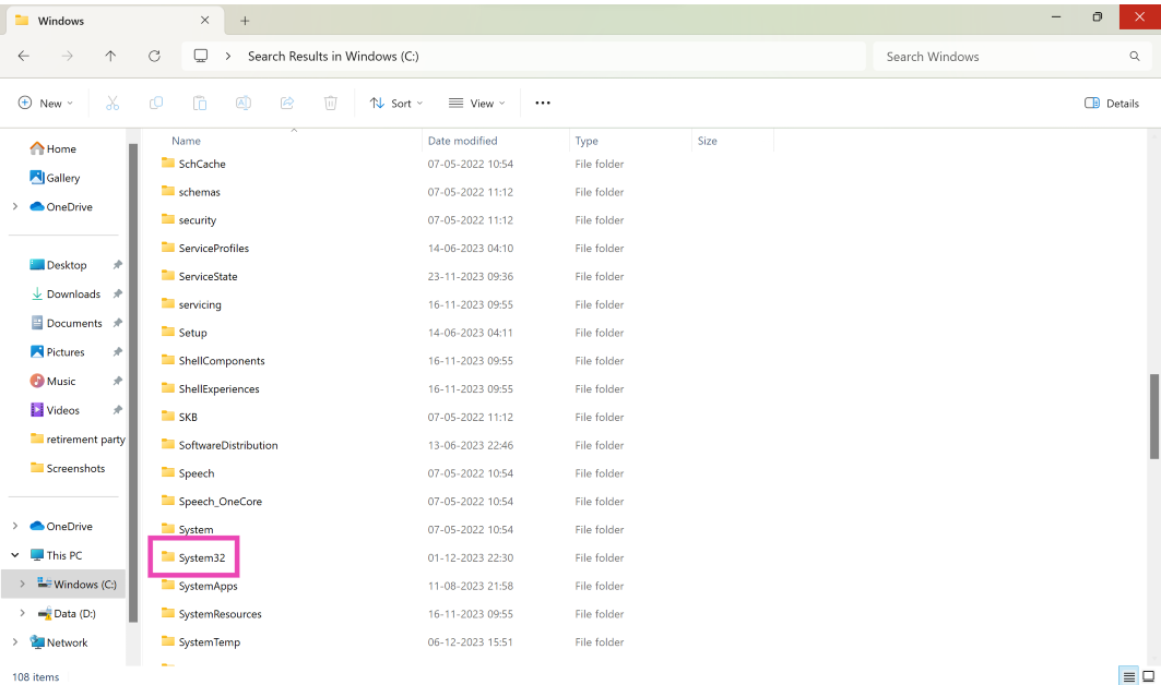 Μπορείτε να βρείτε το αρχείο cmd.exe στοWindows> System32Φάκελος μέσα στη μονάδα C: Drive.