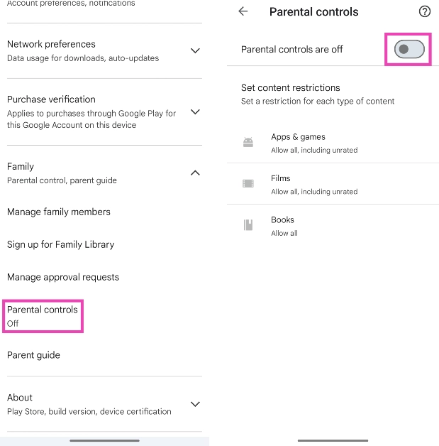 Απενεργοποιήστε τους γονικούς ελέγχους