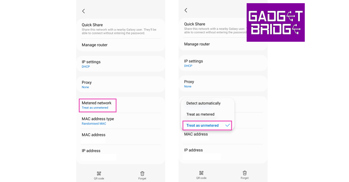 Βήμα 4:Πατήστε στο "Metured Network" και επιλέξτε "Treat As Unsteted".