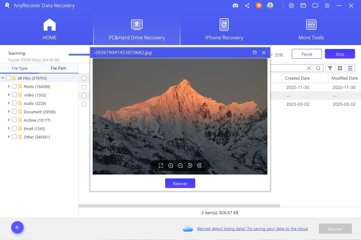 Προεπισκόπηση Διαγραφή δεδομένων και επιλεκτικά ανάκτηση.Το AnyRecover προσφέρει ελεύθερα προεπισκόπηση όλων των χαμένων δεδομένων πριν από την ανάκτηση, ώστε να μπορείτε να ανακτήσετε μόνο τα δεδομένα επιθυμίας.
