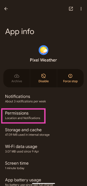 ΠηγαίνωΡυθμίσεις> Εφαρμογές> καιρός> Δικαιώματα> Τοποθεσίακαι επιλέξτε 'Αφήστε όλη την ώρα'.