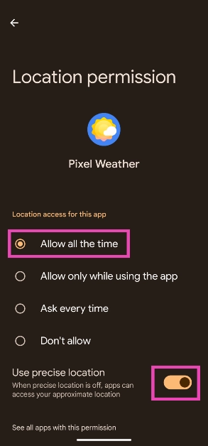 Επιτρέψτε την ακριβή πρόσβαση τοποθεσίας στην εφαρμογή Weather