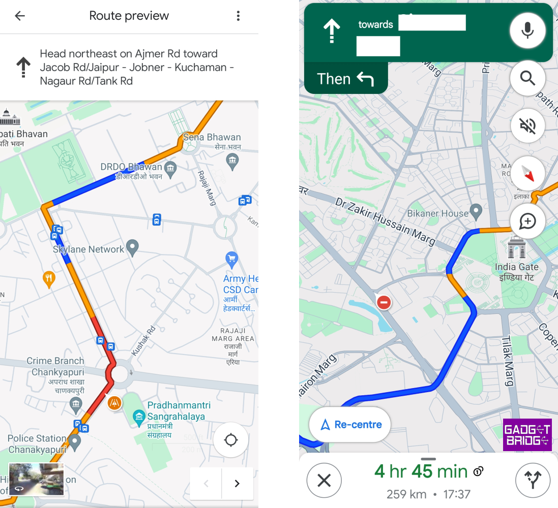 Έγχρονο πέρασμα δρόμου:Ένα μπλε πέρασμα στον χάρτη αντιπροσωπεύει ότι υπάρχει ελάχιστη κυκλοφορία σε αυτό το τέντωμα του δρόμου. Εν τω μεταξύ, ένα πορτοκαλί πέρασμα σημαίνει ότι υπάρχει ήπια κυκλοφορία στο δρόμο και ένα κόκκινο πέρασμα συμβολίζει τη στάσιμη κίνηση.