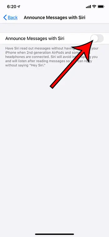 Βήμα 4: Πατήστε το κουμπί δίπλα στοΑνακοινώστε μηνύματα με Siri.