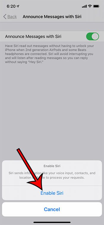 Βήμα 5: Πατήστε τοΕνεργοποίηση Siriκουμπί, αν δεν έχετε ενεργοποιήσει το Siri.