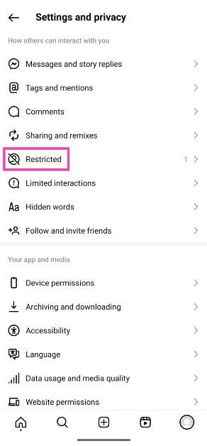 Η παρεμπόδιση κάποιου εξασφαλίζει ότι δεν μπορούν να δουν το προφίλ ή το περιεχόμενό σας και δεν είναι σε θέση να επικοινωνήσουν μαζί σας μέσω DMS. Ο περιορισμός κάποιου δεν αφαιρεί την πρόσβασή του στο προφίλ σας ή στο DMS. Αντ 'αυτού, τα μηνύματά τους θα προσγειώνονται απευθείας στο φάκελο «αιτήσεις» και τα σχόλιά τους θα κρυφτούν από προεπιλογή στο προφίλ σας.