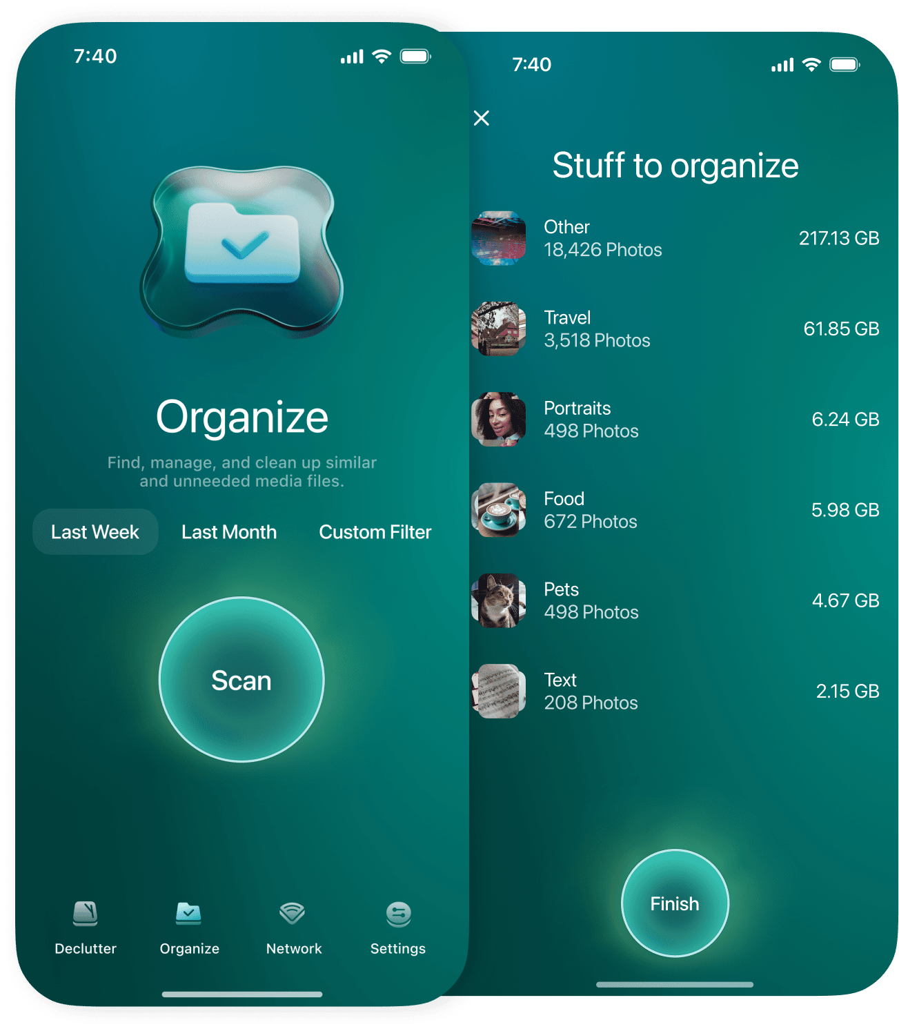 Ελέγξτε τα κατηγοριοποιημένα αντικείμενα και τακτοποιήστε τη συλλογή σας αφαιρώντας τυχόν περιττά μέσα ενημέρωσης με τη βρύση ενός κουμπιού.