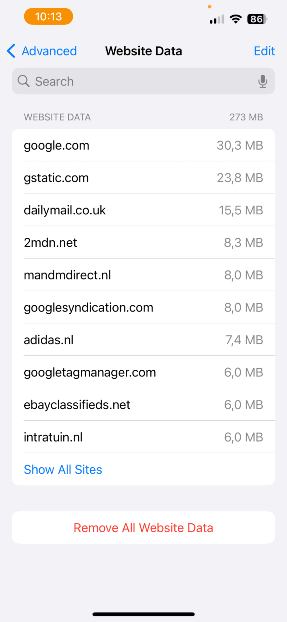 - Ανοίξτε τις Ρυθμίσεις> Safari> Advanced> Δεδομένα ιστότοπου.
