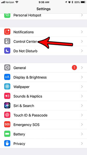 Βήμα 2: Επιλέξτε τοΚέντρο ελέγχουεπιλογή.