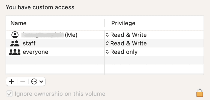 Κάντε κλικ στο αρχείο στο Finder και πατήστε Command-I για να ανοίξετε το παράθυρο GET INFO. Στο κάτω μέρος του παραθύρου, κάντε κλικ στο βέλος δίπλα στην κοινή χρήση και τα δικαιώματα. Δίπλα για να διαβάσετε και να γράψετε, θα πρέπει να πει το όνομα χρήστη σας ή «ο καθένας». Εάν όχι, κάντε κλικ στο μενού και επιλέξτε ένα από αυτά. Δοκιμάστε να κάνετε αυτό που κάνατε με το αρχείο όταν εμφανίστηκε το μήνυμα σφάλματος.