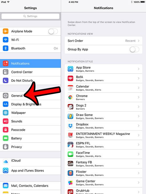 Βήμα 2: Επιλέξτε τοΓενικόςεπιλογή στη στήλη στην αριστερή πλευρά της οθόνης.