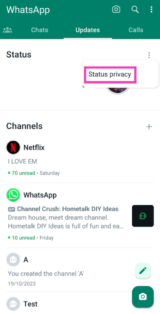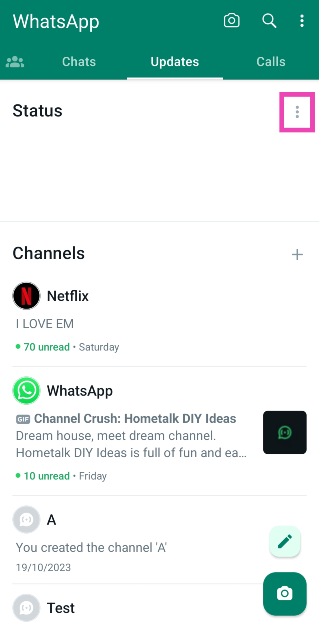 Βήμα 1: ΕκκίνησηWhatsapp στο τηλέφωνό σας και χτυπήστε τοελλείψειςΣτην επάνω δεξιά γωνία της οθόνης.