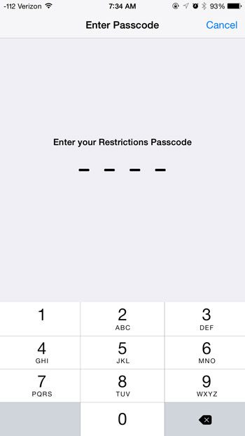 - Βήμα 4: Εισαγάγετε τον κωδικό πρόσβασης περιορισμών. Σημειώστε ότι αυτός ο κωδικός πρόσβασης μπορεί να είναι διαφορετικός από τον κωδικό πρόσβασης που χρησιμοποιείτε για να ξεκλειδώσετε τη συσκευή σας.