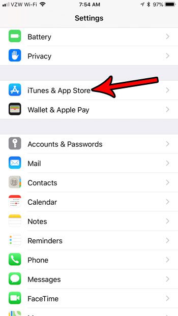 Βήμα 2: Μετακινηθείτε προς τα κάτω και επιλέξτε τοiTunes & App Storeεπιλογή.