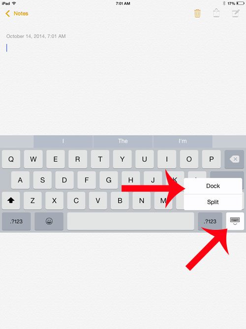 Στη συνέχεια, το iPad θεωρείται "undocked". Ευτυχώς, μπορείτε να αλλάξετε γρήγορα αυτή τη ρύθμιση και να επαναφέρετε το πληκτρολόγιο στην προεπιλεγμένη θέση του στο κάτω μέρος της οθόνης σας.