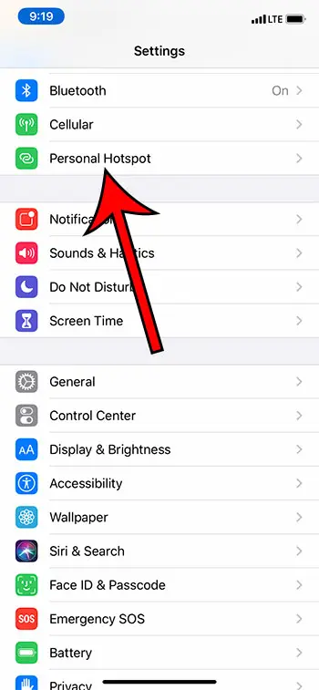 Βήμα 2: Επιλέξτε τοΠροσωπικό hotspotεπιλογή.