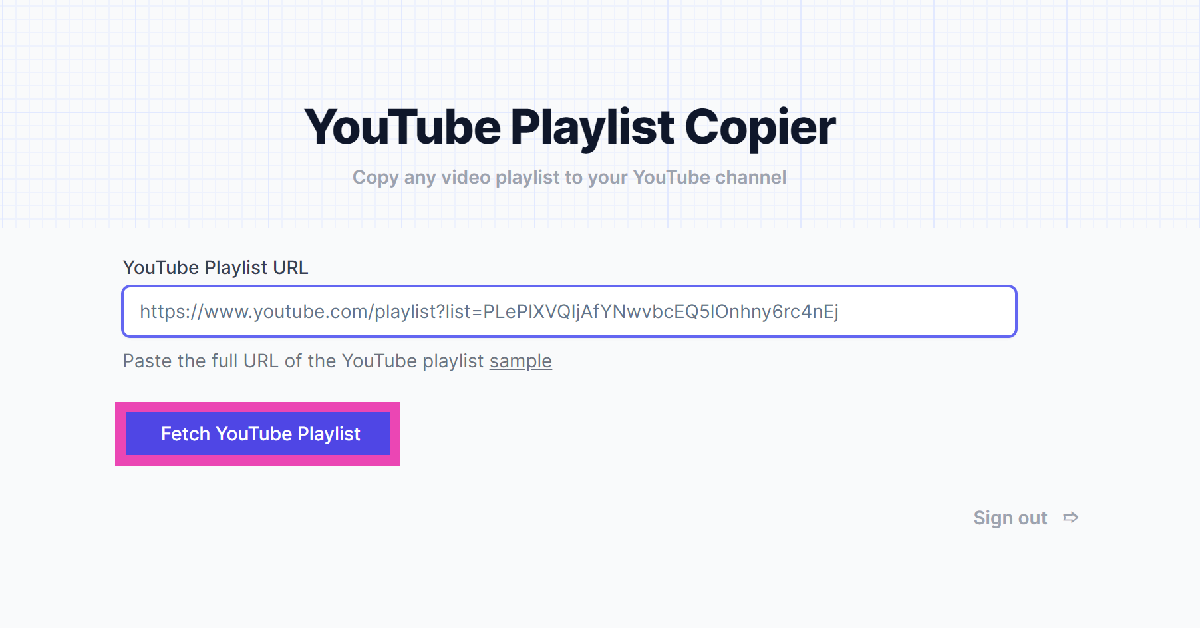 Βήμα 3:Εισαγάγετε τοUrlτης λίστας αναπαραγωγής που θέλετε να αντιγράψετε.