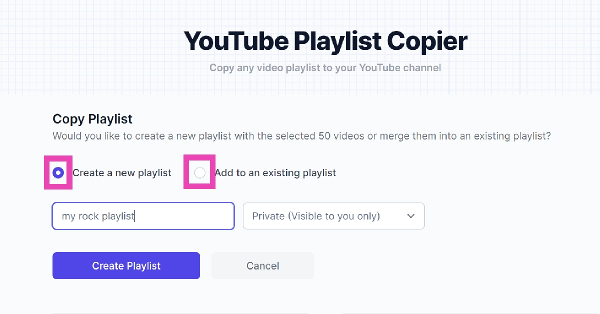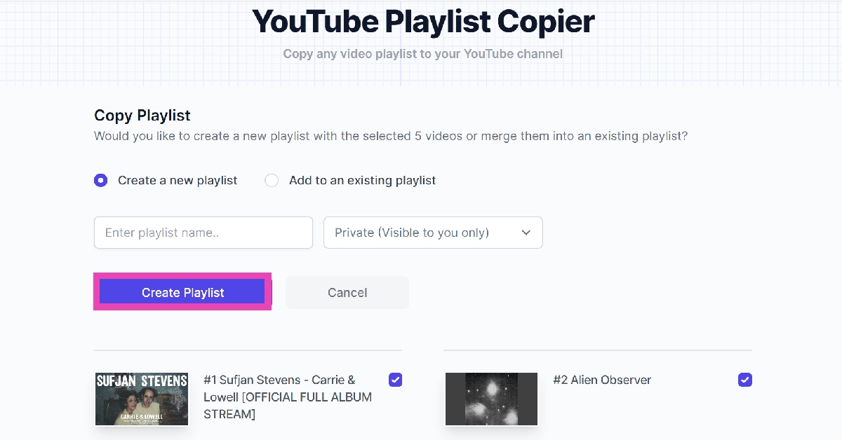 Χρησιμοποιήστε ένα ηλεκτρονικό εργαλείο για να αντιγράψετε και να συγχωνεύσετε τις λίστες αναπαραγωγής YouTube