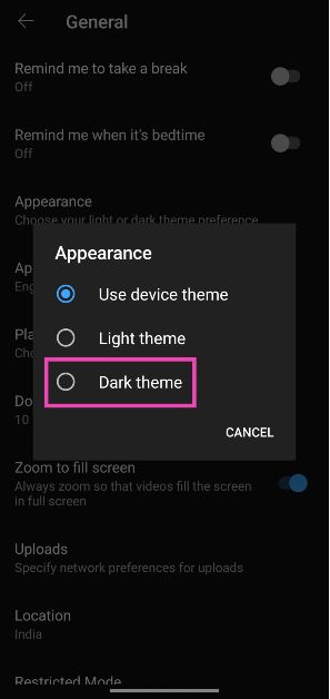 Η χρήση της λειτουργίας σκοτεινού συστήματος στο τηλέφωνό σας μπορεί μερικές φορές να προκαλέσει απροσδόκητα σφάλματα μέσα σε ορισμένες εφαρμογές. Μεταβείτε στο Custom Dark Mode του YouTube για να εξαλείψετε αυτά τα σφάλματα.