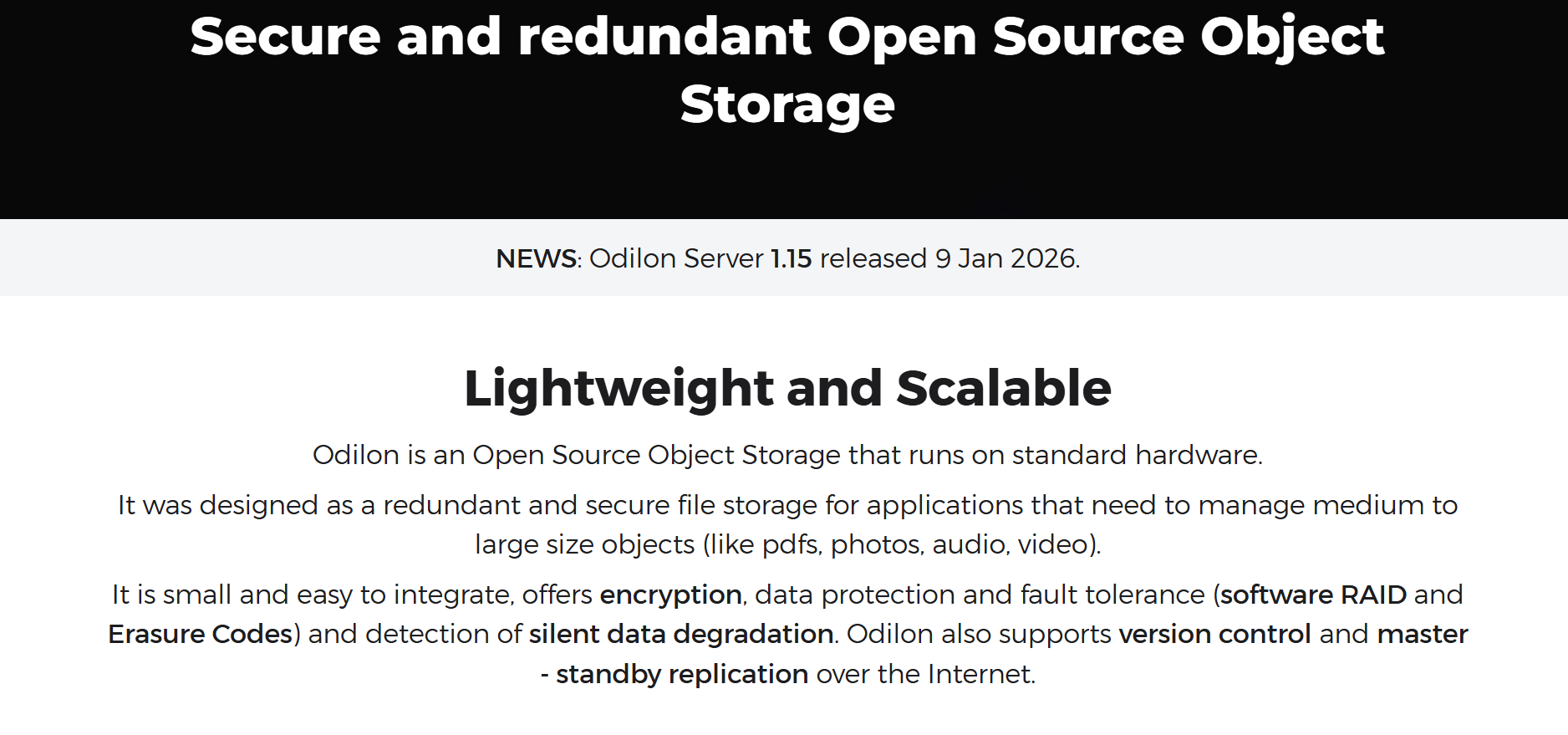 Η Odilon είναι επομένως ιδανική για μικρές και μεσαίες επιχειρήσεις που χρειάζονται μια απλή, ασφαλή και αξιόπιστη λύση αποθήκευσης αντικειμένων χωρίς να βασίζονται σε μεγάλης κλίμακας κατανεμημένα συστήματα ή παρόχους cloud.